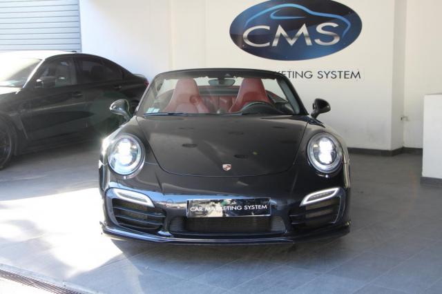 Porsche 911 TURBO Cabriolet 991 3.8 S 560 PDK, essence, noir métallisé, 30/04/2014, Assistance parking AV et AR avec camera de recul, Baguettes de seuil de porte personnalisees en Carbone eclairees, Cadran du chronometre Sport en couleur exterieure Blanc, Cadrans du combine d'instruments en couleur exterieure Blanc, Ceintures de securite en couleur exterieure Rouge Indien, Couvercle du coffre de rangement de la console centrale avec ecusson Porsche, Ecusson Porsche sur appuis-tete, Pack additionnel interieur Tableau de bord en cuir, Porsche Entry & Drive, Selecteur PDK en Aluminium, Sieges Sport entierement electriques (14 reglages electriques), Inserts decoratifs en fibres de carbone